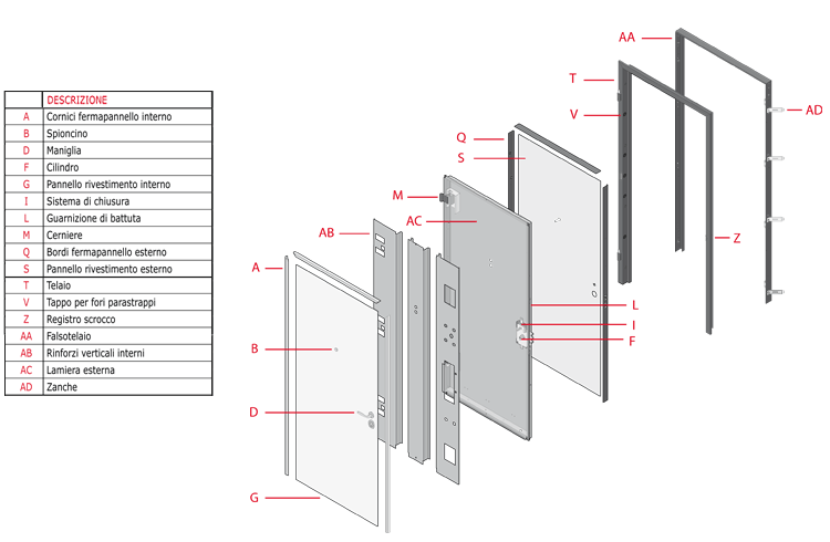- Cerniere ad alta resistenza, saldamente ancorate alla struttura