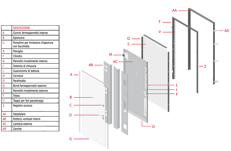 - Costruita in lamiera di acciaio zincato con rinforzi interni